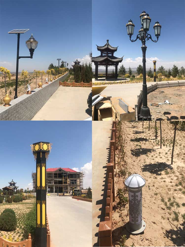 寧夏吳忠市同心縣景觀燈、庭院燈、草坪燈系列項(xiàng)目,是我公司與2018年5月完成的具有當(dāng)?shù)仫L(fēng)格的特色燈具,我們提供給客戶的這批產(chǎn)品都是都是根據(jù)客戶的需求,安裝公司圖冊進(jìn)行生產(chǎn)的,每款燈都有特色,全部安裝的是市電庭院燈、景觀燈、草坪燈。